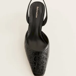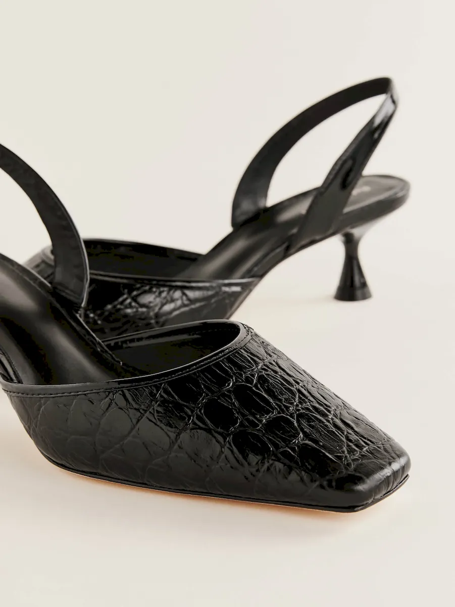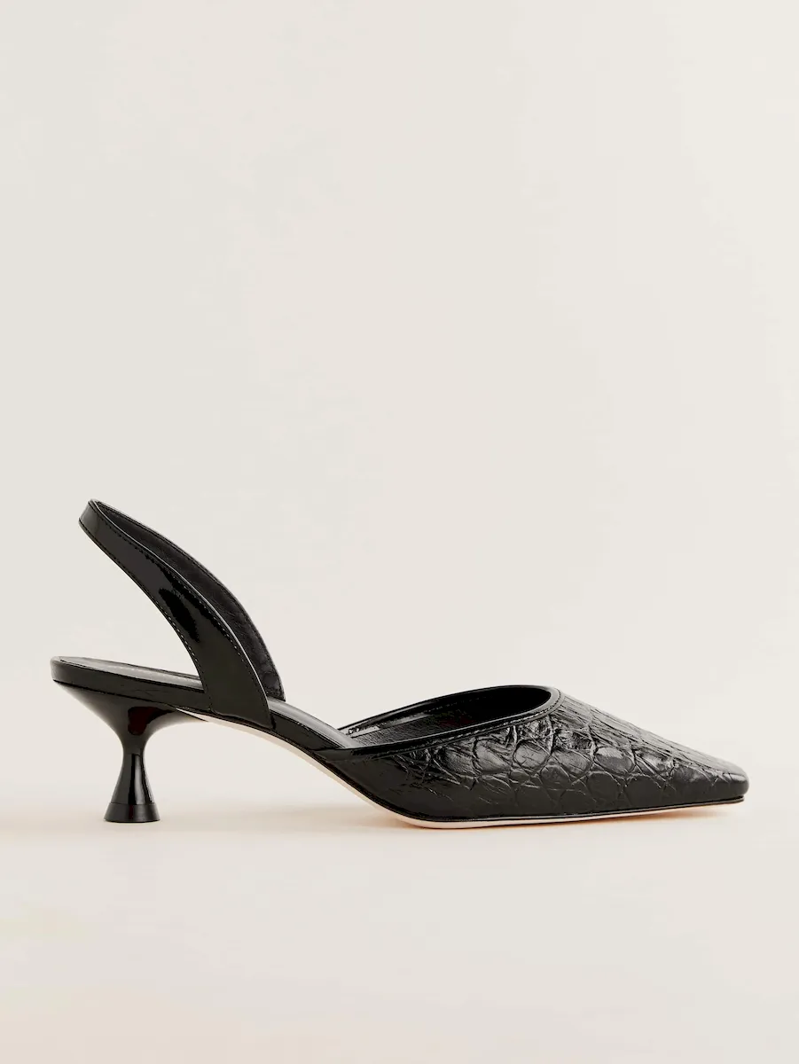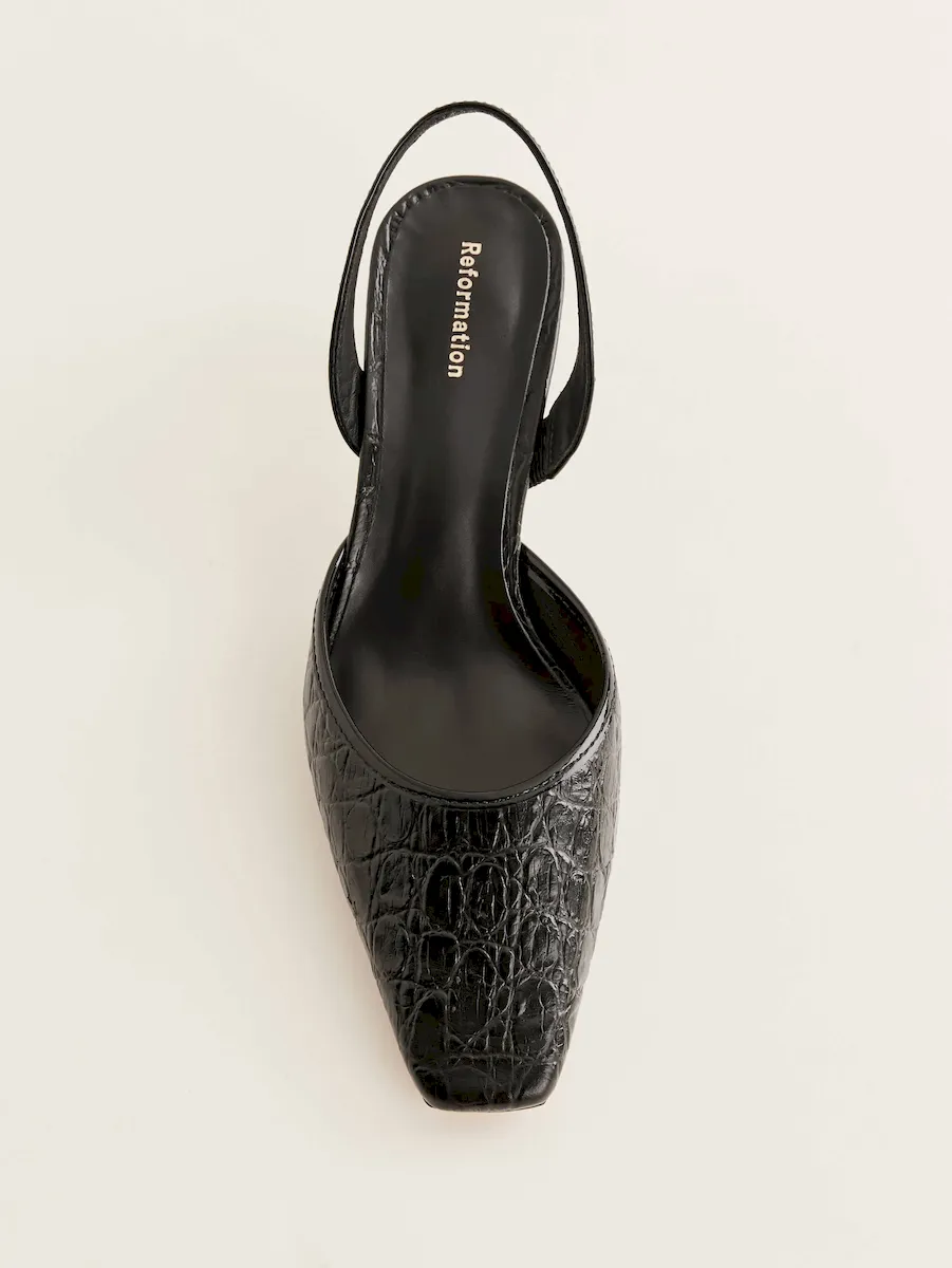 Made from a croc-embossed bovine leather. Spot clean. More onfabric & care.