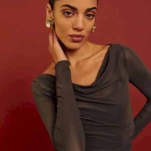 The model is wearing a size XS and is 5’8″, 24″ waist, 36″ hips, 32″ bust.