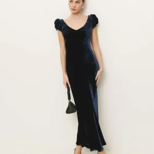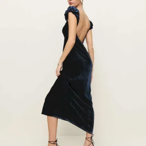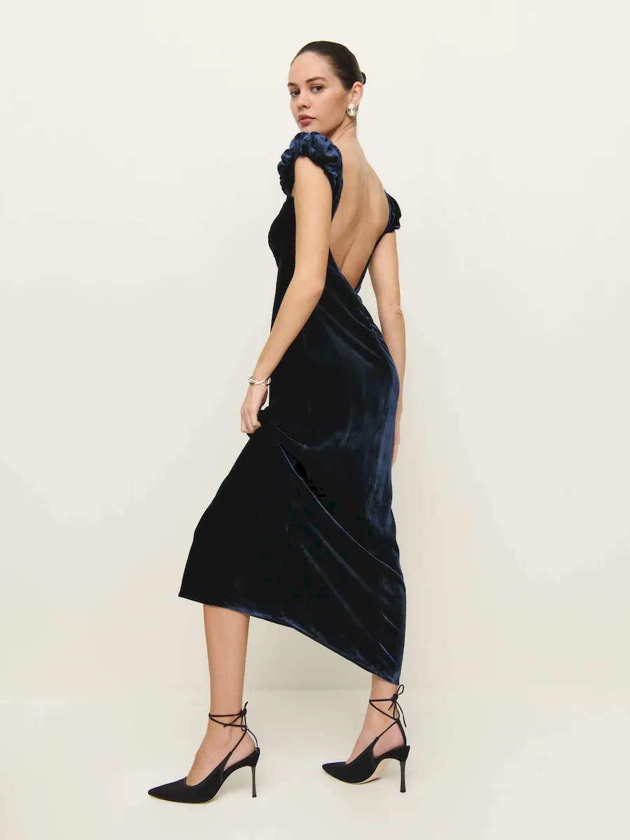 This is a soft, non-stretch velvet with a medium pile – 82% rayon, 18% silk. Dry clean only. More onfabric & care.