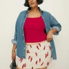 The model is wearing a size 0 and has a 24″ waist, 34″ hips.