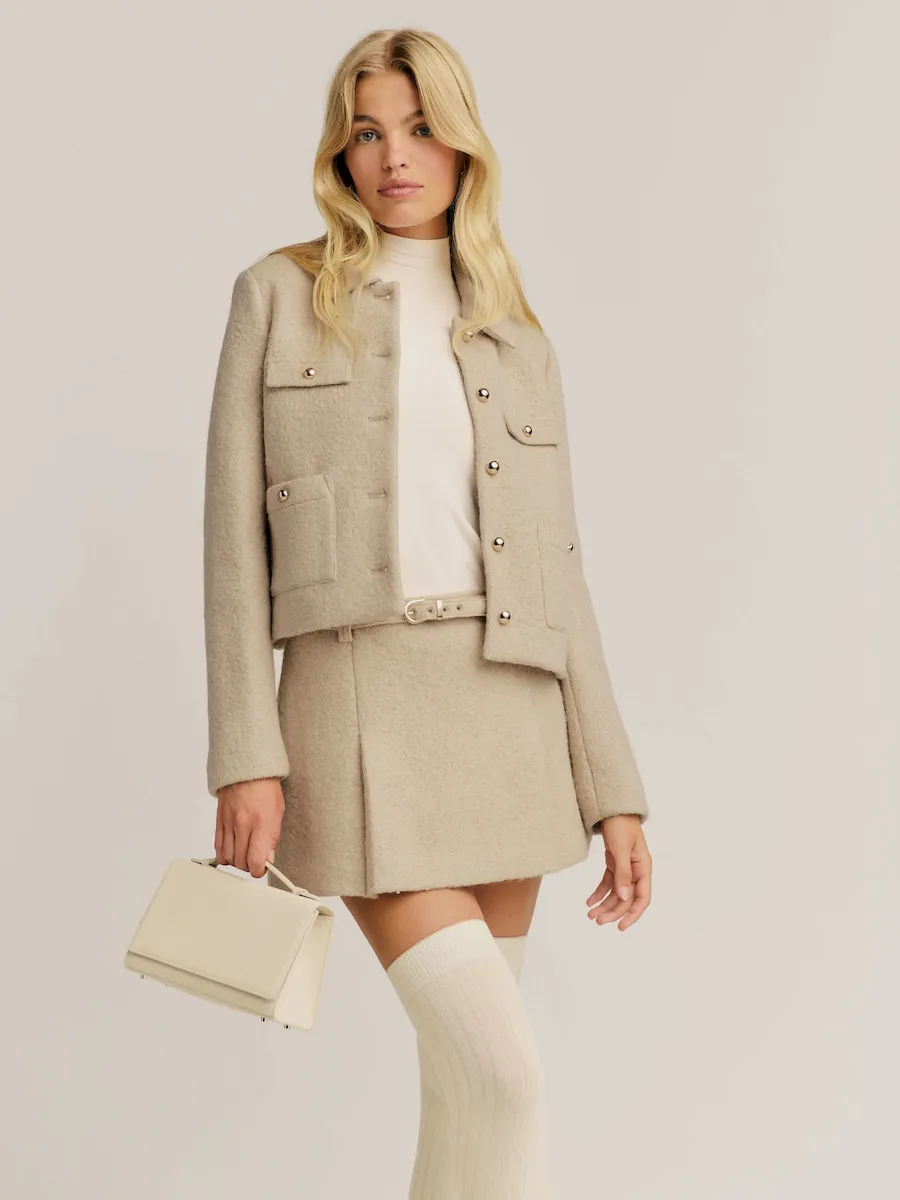 This is a deadstock fabric made from 50% Polyester and 50% Wool. Dry clean only. More onfabric & care.