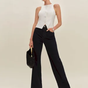 The model is wearing a size 2 and is 5’10”, 25.5″ waist, 35.5″ hips, 35.5″ bust.