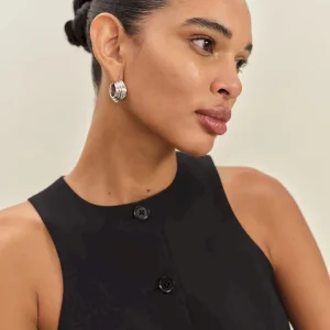 The model is wearing a size 0 and is 5’11”, 24″ waist, 35″ hips, 31″ bust.