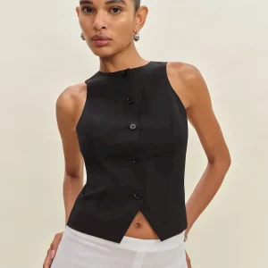 The model is wearing a size 0 and is 5’11”, 24″ waist, 35″ hips, 31″ bust.