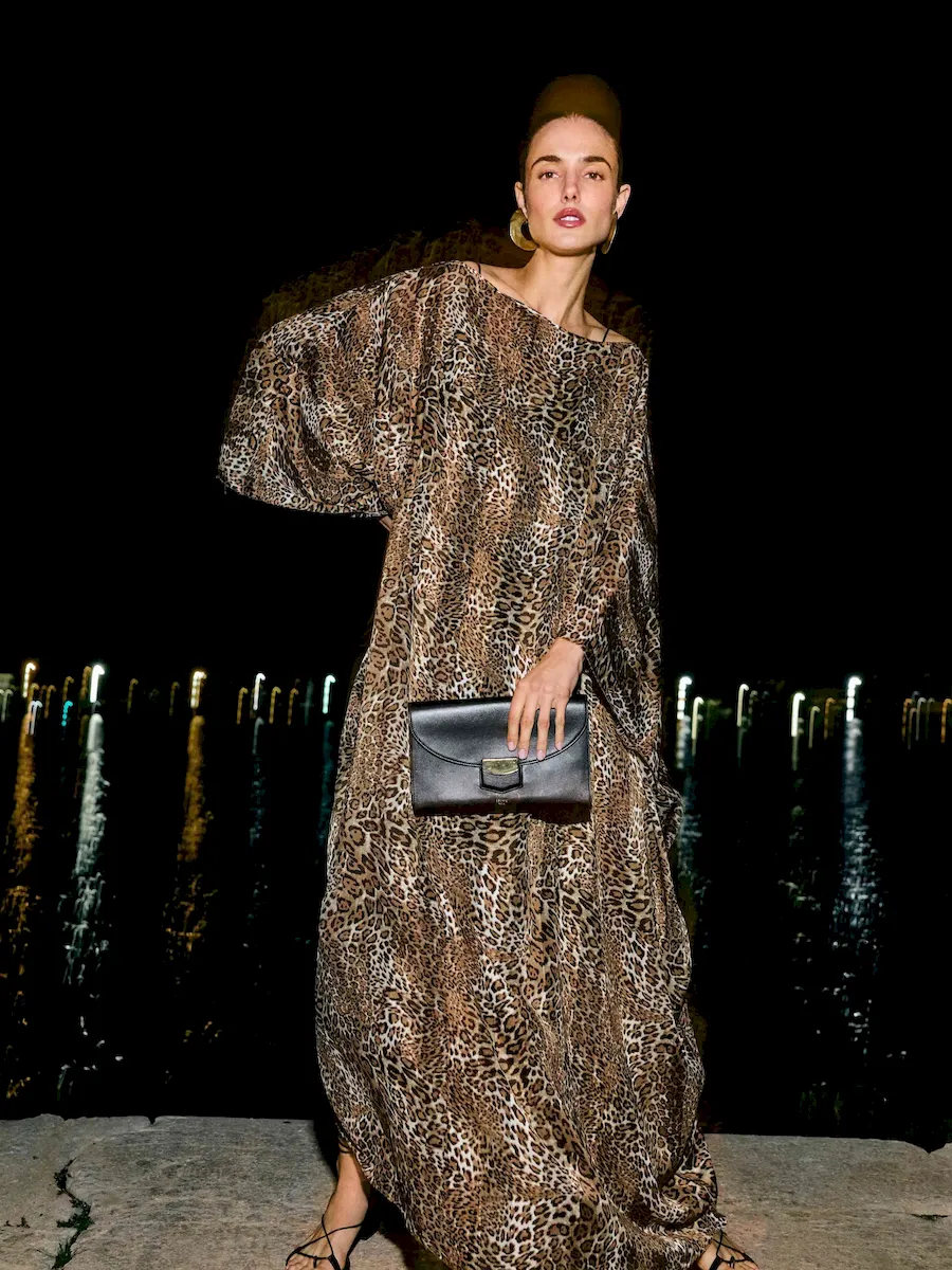 The model is wearing a size XS and is 5’9″, 23.5″ waist, 34″ hips, 34″ bust.