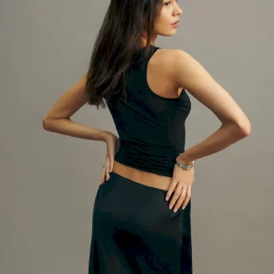 The model is wearing a size XS and is 5’9″, 24″ waist, 34″ hips, 32″ bust.