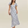 The model is wearing a size 0 and is 5’9″, 23.5″ waist, 34″ hips, 34″ bust.
