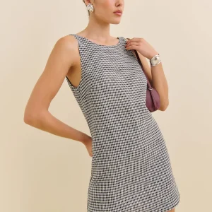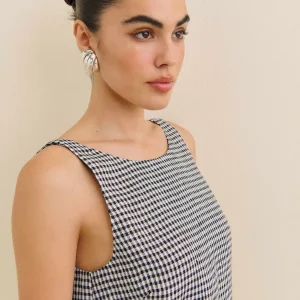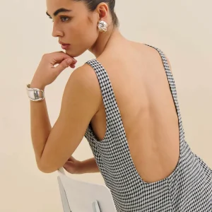The model is wearing a size 0 and is 5′ 9.5″, 24″ waist, 34.5″ hips, 34″ bust.