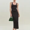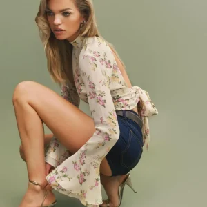 The model is wearing a size 0 and is 5’10”, 24″ waist, 35″ hips, 31″ bust.