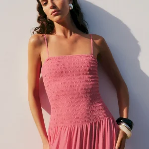 full bodice smocking, straight neckline.