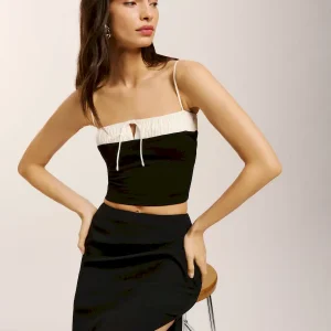The model is wearing a size XS and is 5’9″, 23″ waist, 34″ hips, 32″ bust.