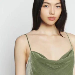 adjustable straps, cowl neckline.