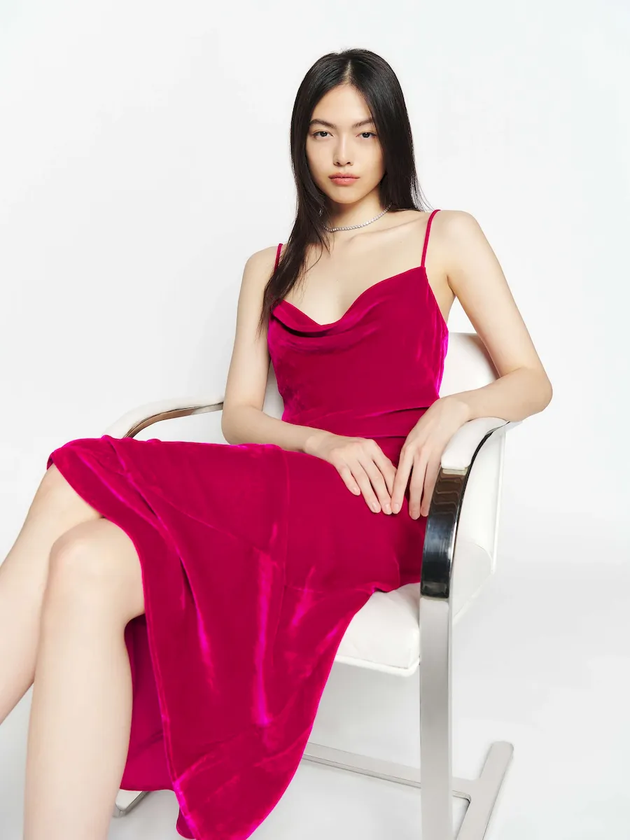 This is a soft, non-stretch velvet with a medium pile – 82% rayon, 18% silk
