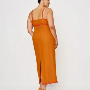 The model is wearing a size 14 and is 5’9.5″, 29″ waist, 43.5″ hips, 39.5″ bust.