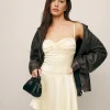 The model is wearing a size 0 and is 5’10”, 24″ waist, 35″ hips, 31″ bust.