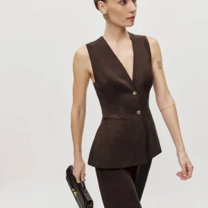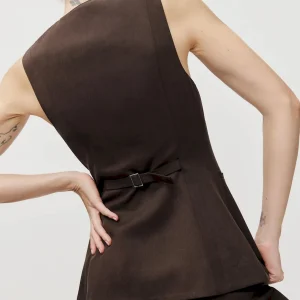 The model is wearing a size 0 and is 5’10”, 25″ waist, 34.5″ hips, 31″ bust.
