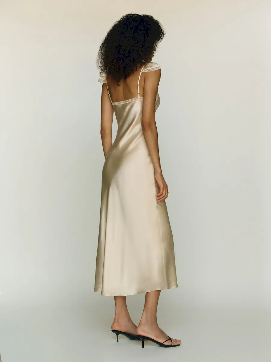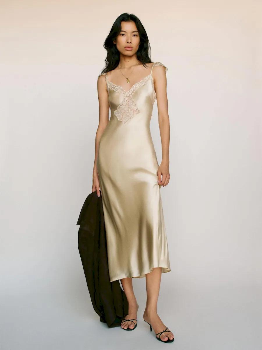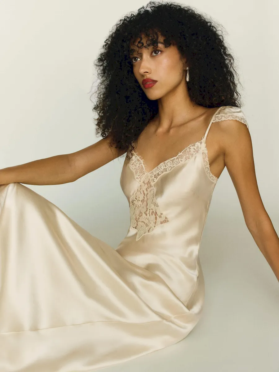 This is a lightweight silk charmeuse fabric made from 100% Silk. Dry clean only. More onfabric & care.