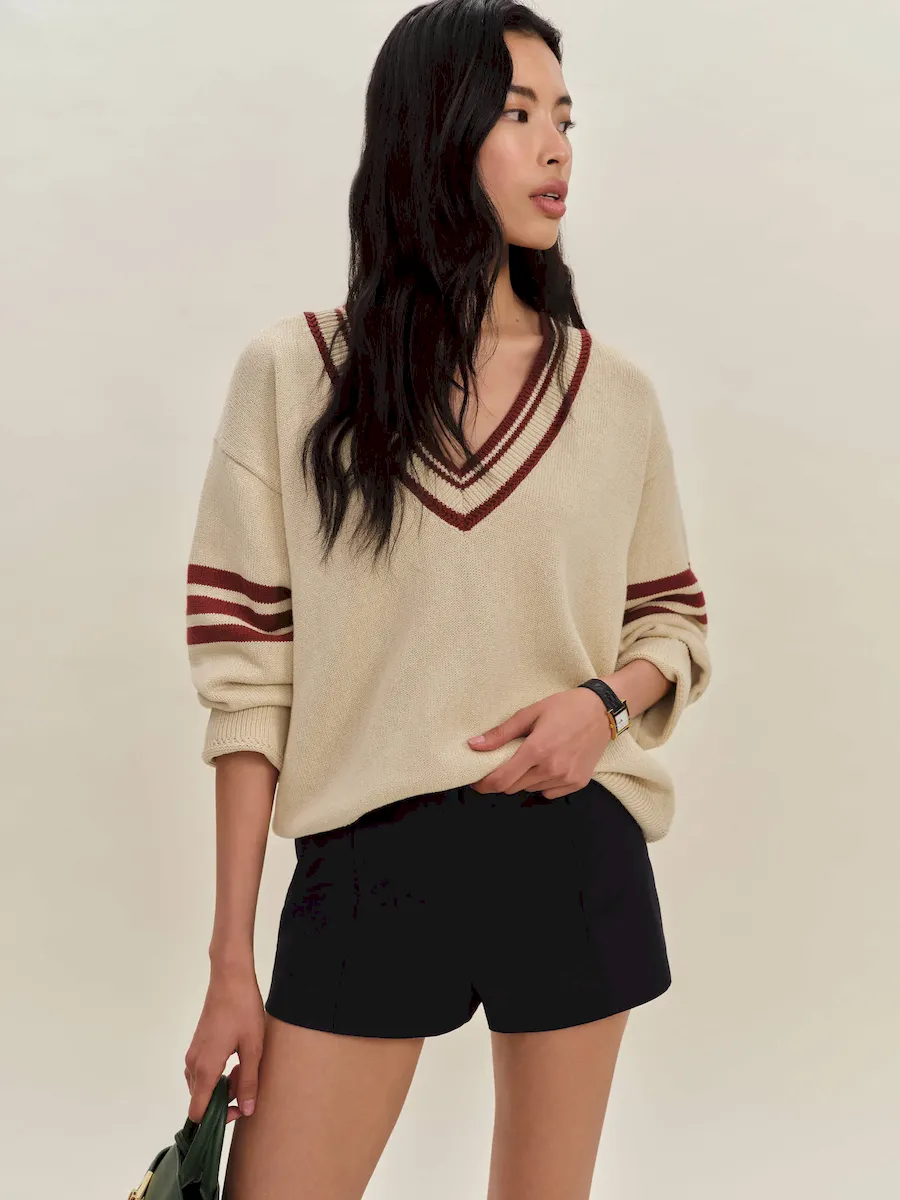 The model is wearing a size XS and is 5’10”, 24.5″ waist, 34.5″ hips, 31″ bust.