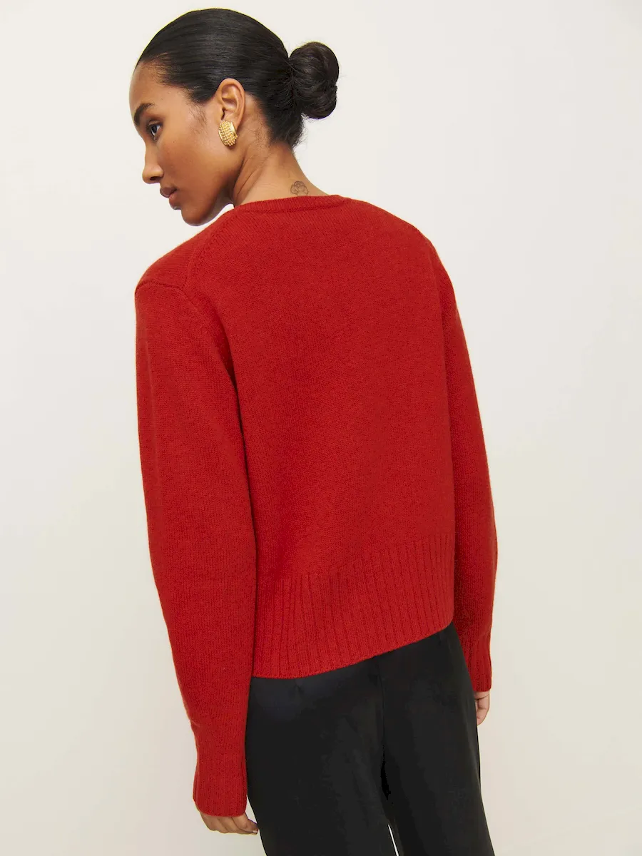 This sweater is made with 100% traceable NATIVA™️ wool sourced from a transitional regenerative farm. Regenerative practices are super different from conventional methods, so it takes a lot of time, effort, and resources to make the switch. We think that regenerative is the future, so we’re excited to support it from the ground up with each sweater we make. Dry clean only. More onfabric & care.