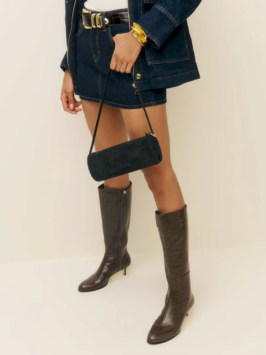 Heavy weight premium calf suede. Spot clean. More onfabric & care.