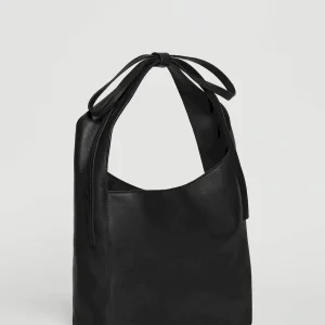 a slouchy tote with a magnetic closure,features a decorative tie detail,and inside zip pocket with a card holder.