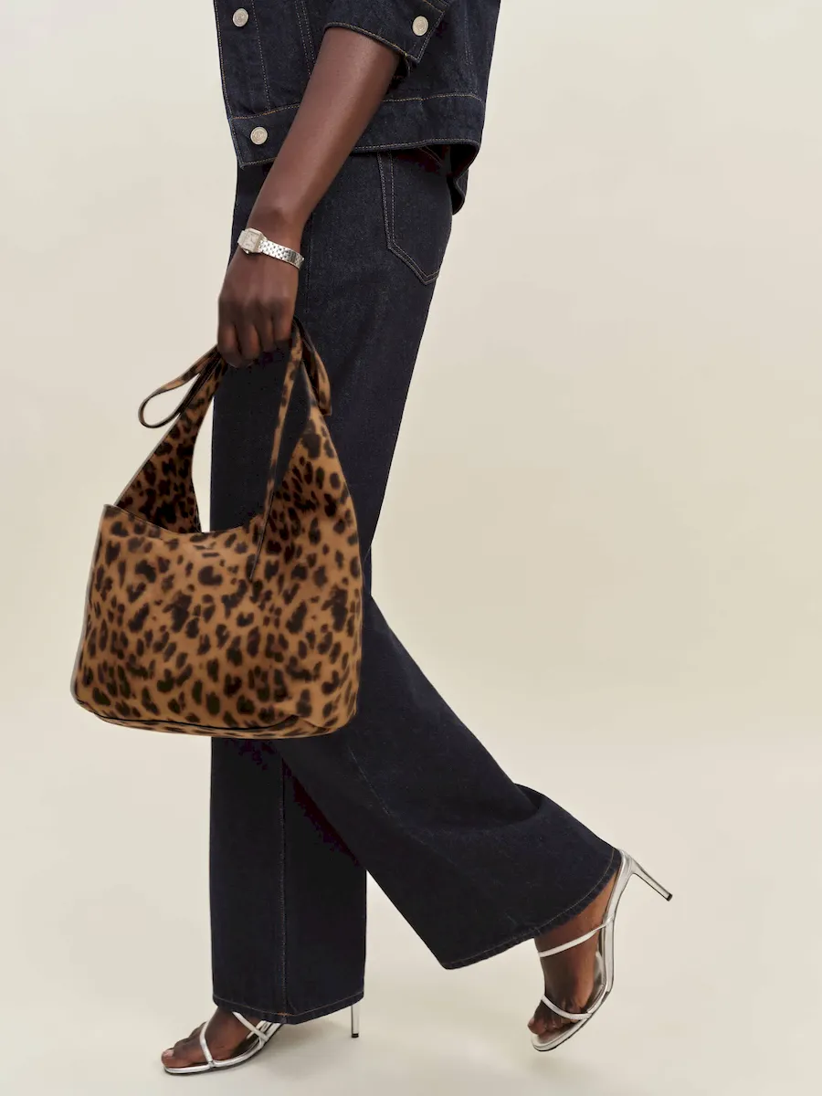 High-quality delicate nap, sheep suede with leopard print. Spot clean. More onfabric & care.