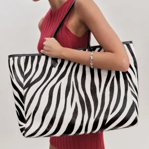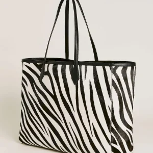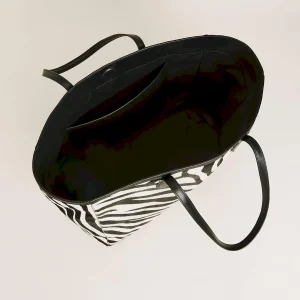 Silky hair calf with a luxurious zebra print. Spot clean. More onfabric & care.