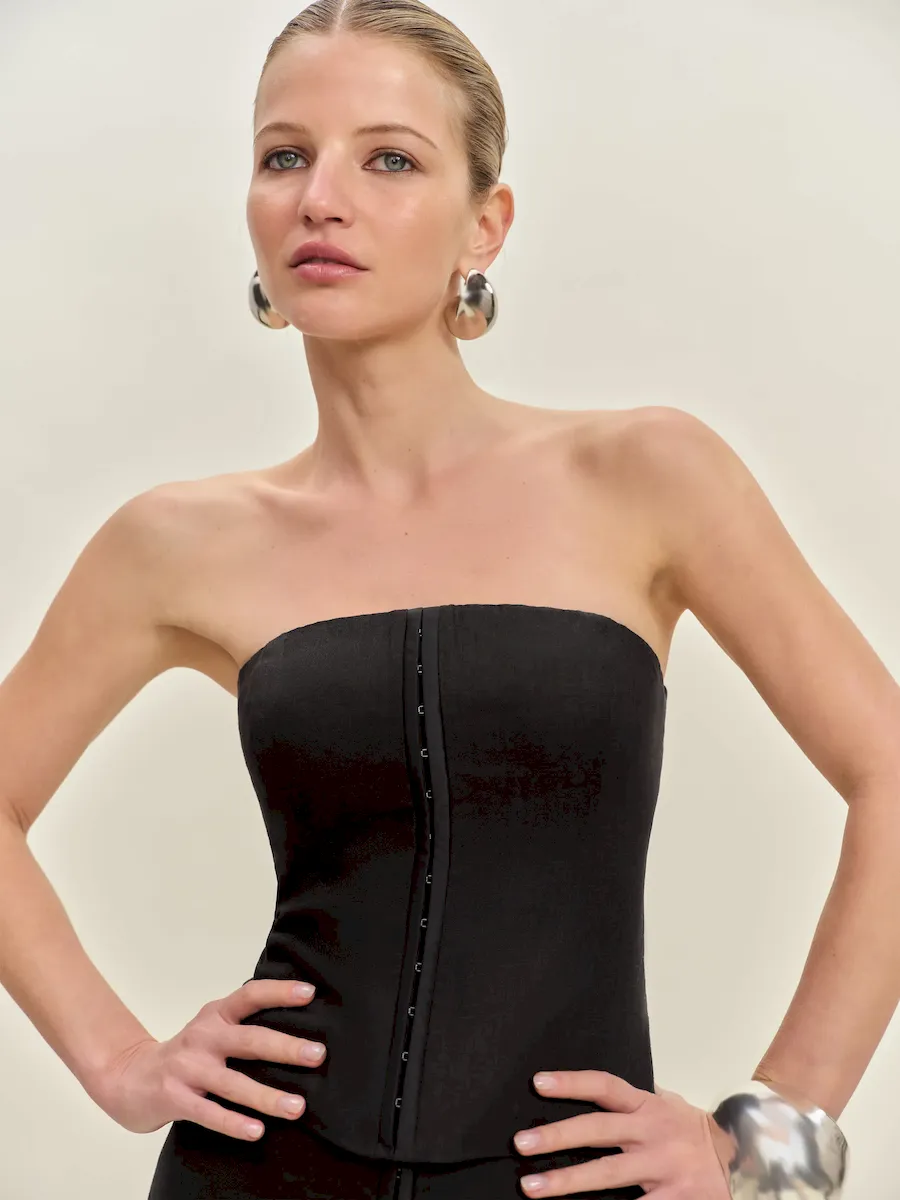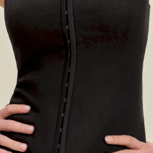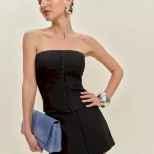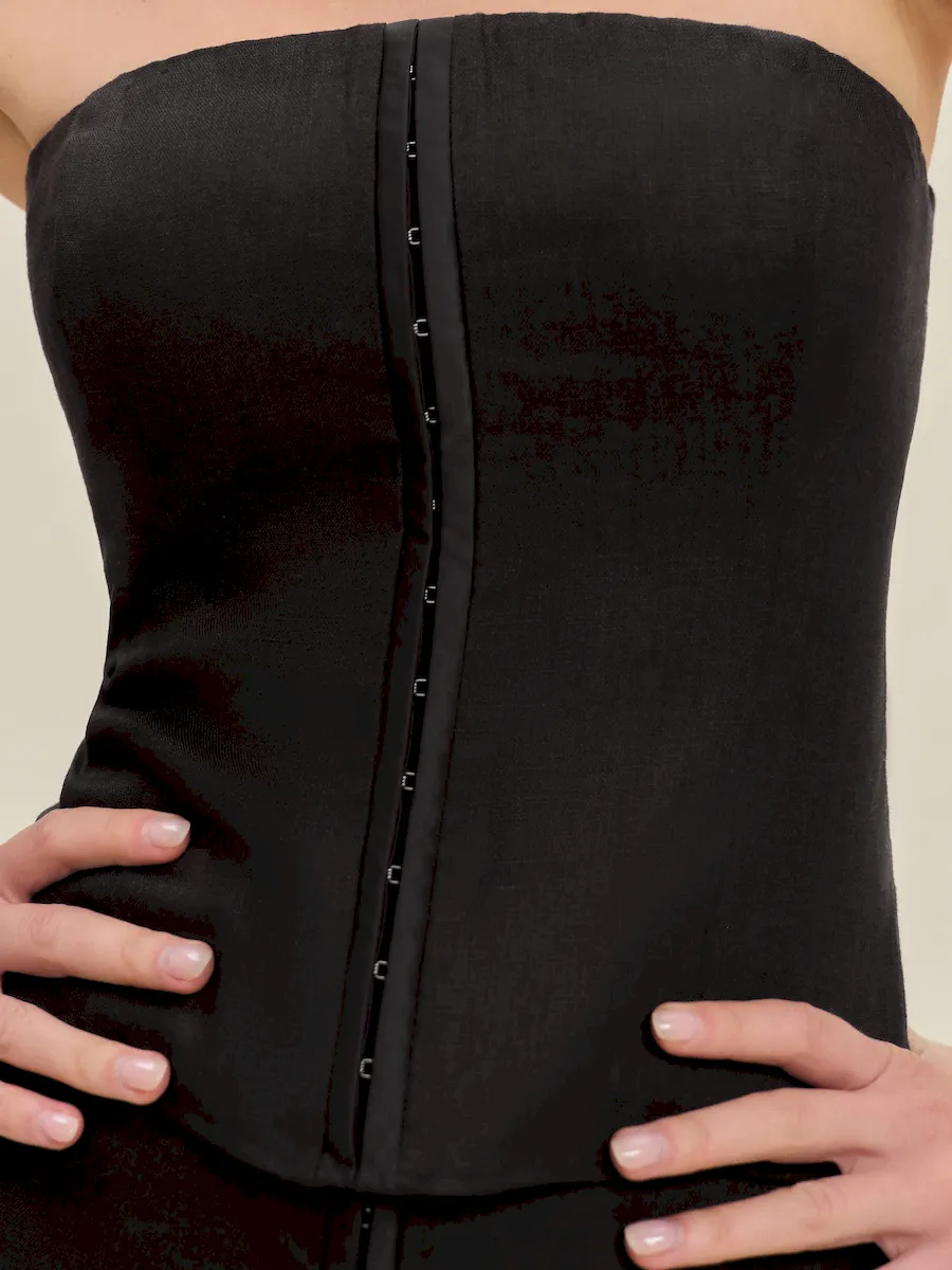 The model is wearing a size 0 and is 5’7″, 23″ waist, 34″ hips, 32″ bust.