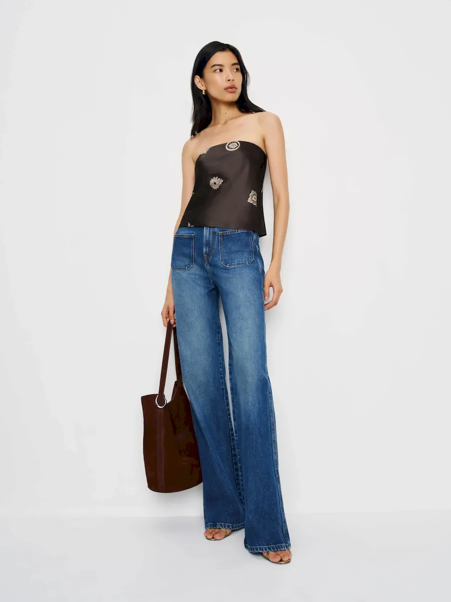 The model is wearing a size XS and is 5’10”, 24.5″ waist, 34.5″ hips, 31″ bust.