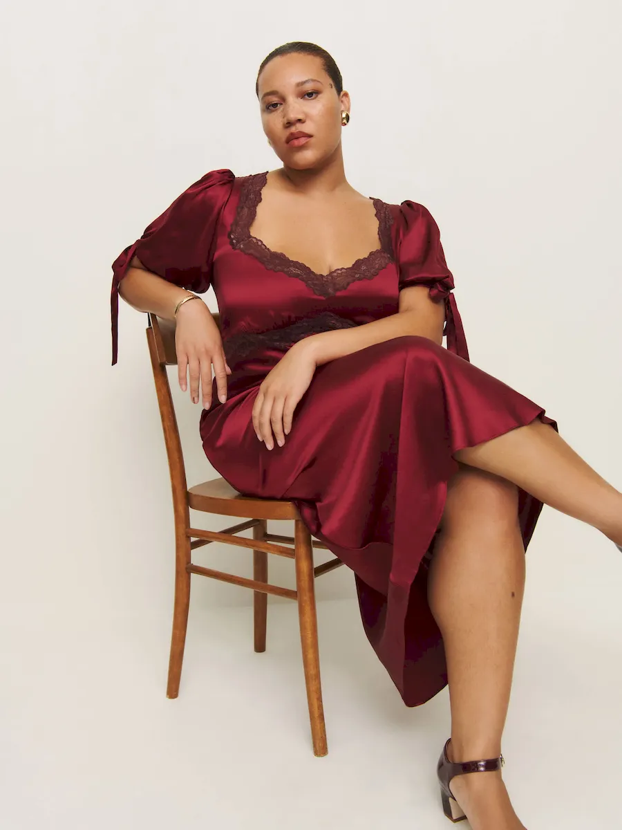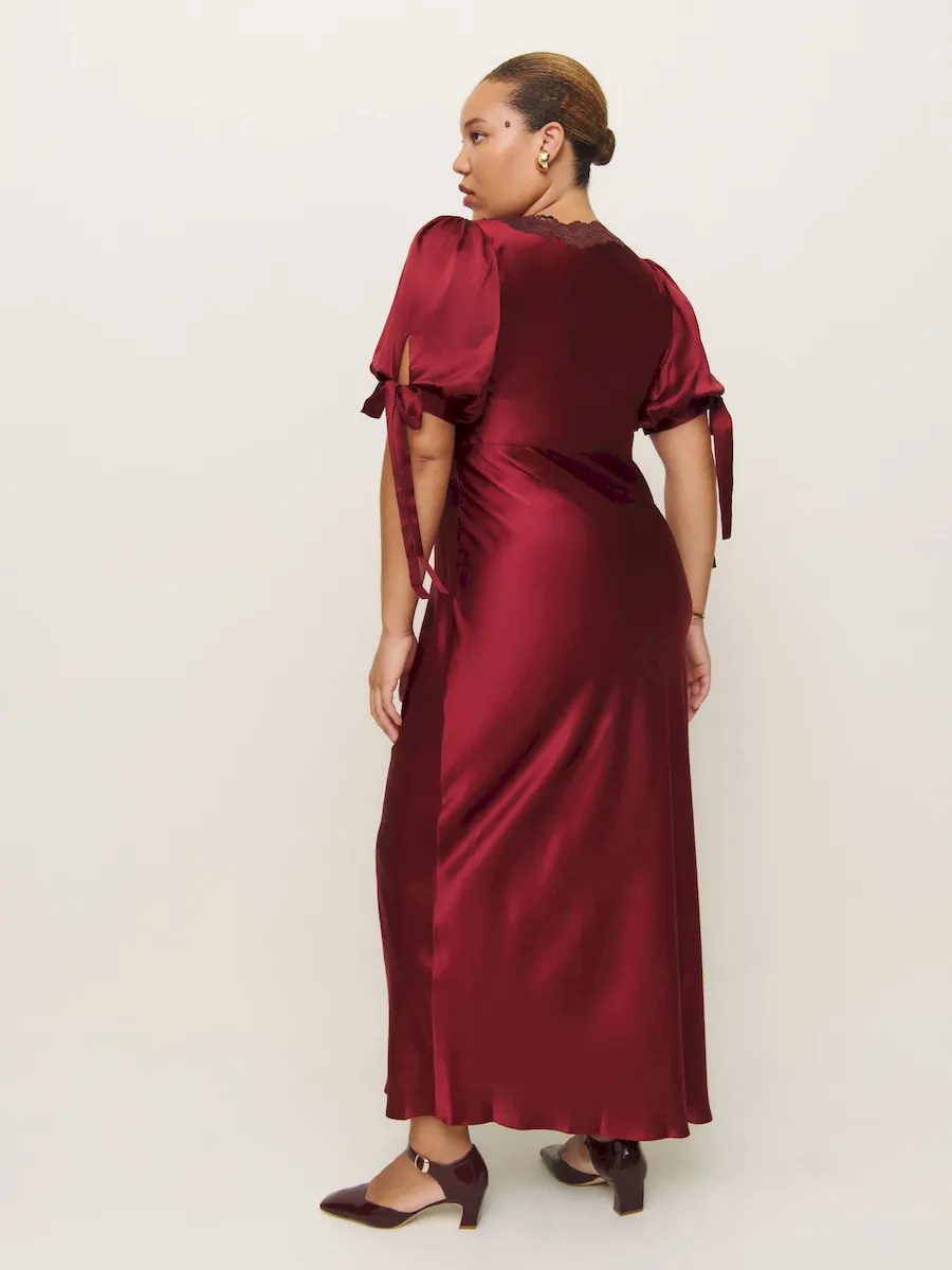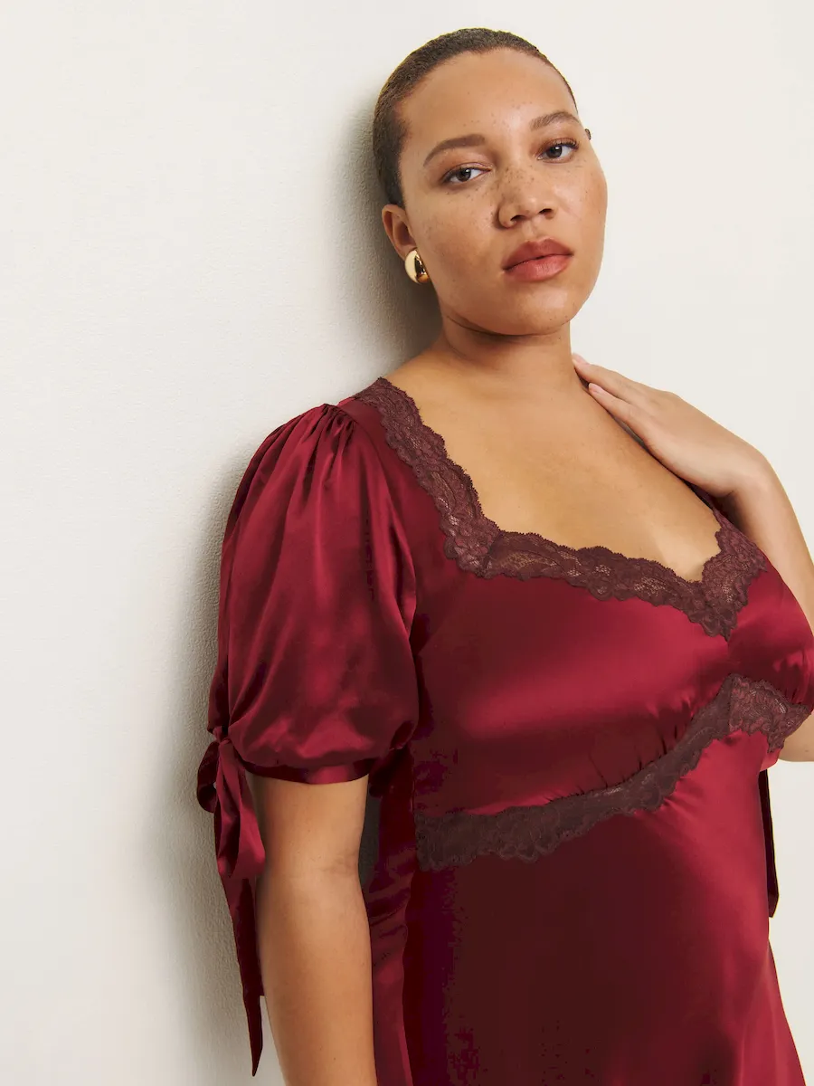 This is a lightweight silk charmeuse fabric – 100% silk. Dry clean only. More onfabric & care.
