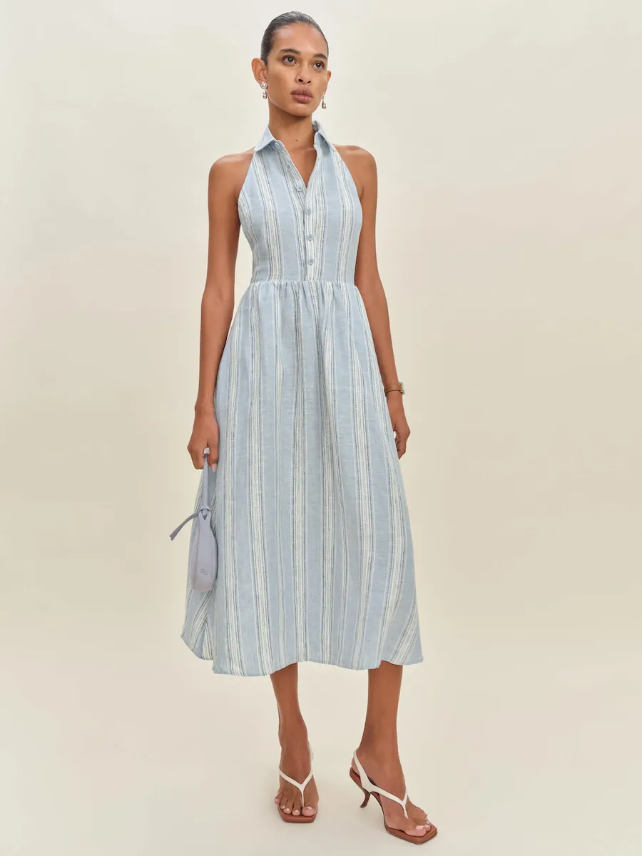 This is a lightweight linen fabric – 100% linen. Wash cold + line dry. More onfabric & care.