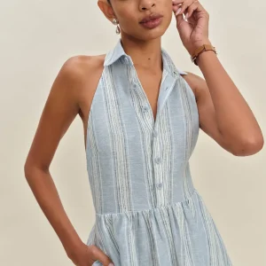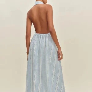 The model is wearing a size 0 and is 5’11”, 24″ waist, 35″ hips, 31″ bust.