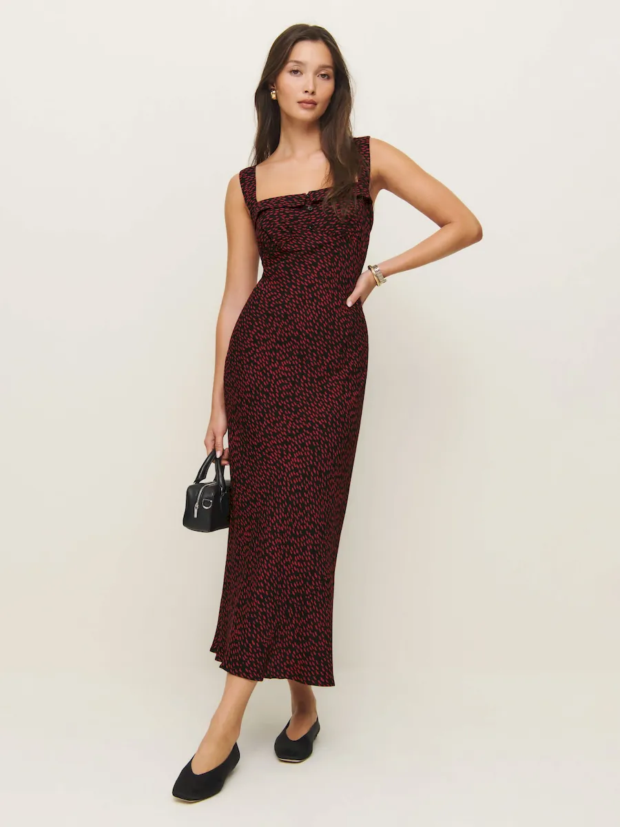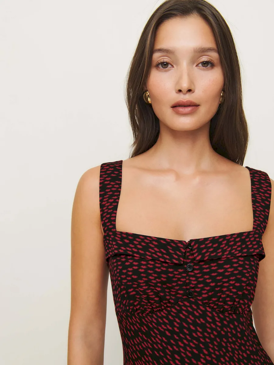 adjustable straps, straight neckline.