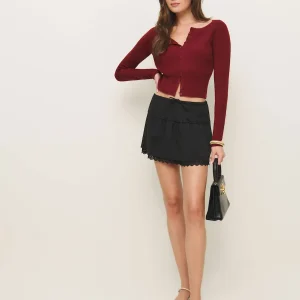The model is wearing a size 0 and has a 24″ waist, 35″ hips.