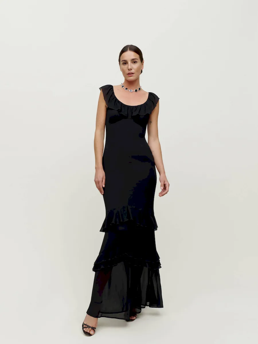 Designed to be fitted at bodice with a column skirt.See our size & fit guide.
