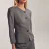 The model is wearing a size XS and is 5′ 9.5″, 24″ waist, 34.5″ hips, 34″ bust.