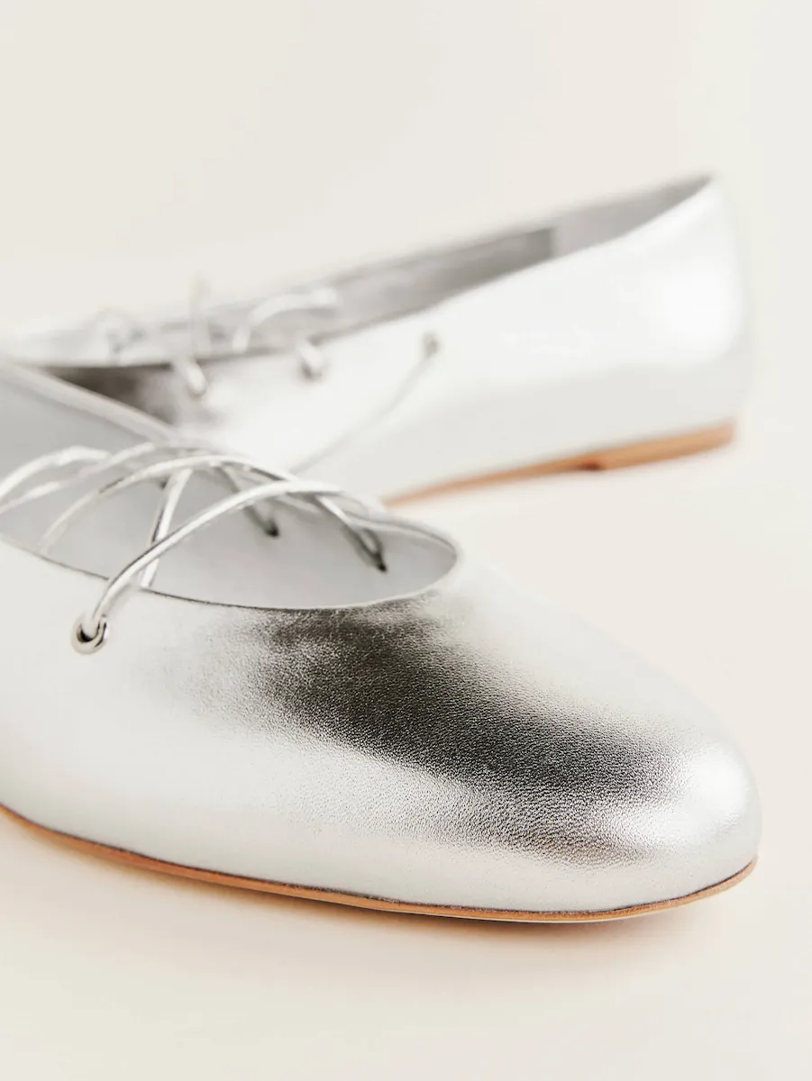 Upper is made from soft foil metallic leather with high shine and subtle surface texture.