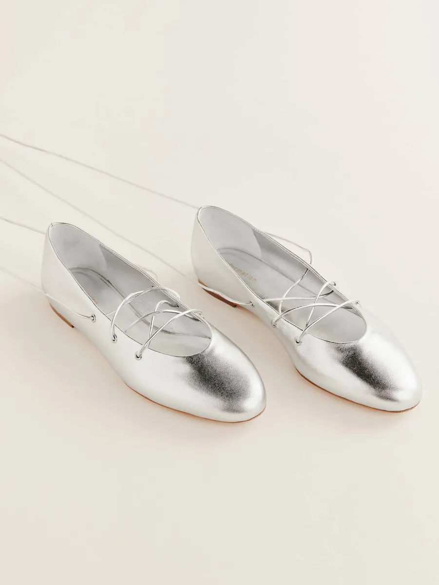 Upper is made from soft foil metallic leather with high shine and subtle surface texture. Spot clean. More onfabric & care.
