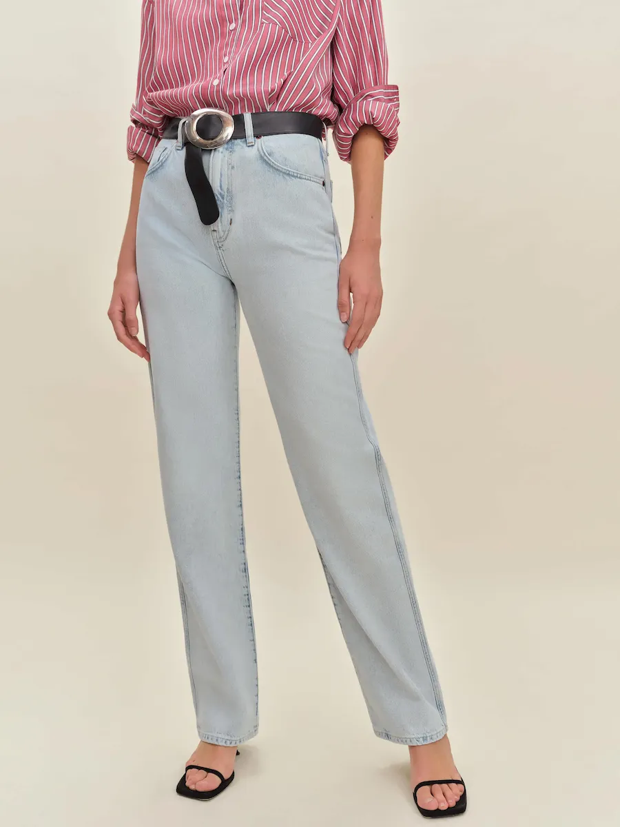 Designed to be slouchy below the natural waist, thighs, and legs with fitted hips.See our size & fit guide.
