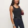 The model is wearing a size 25 and has a 25″ waist, 34.5″ hips.