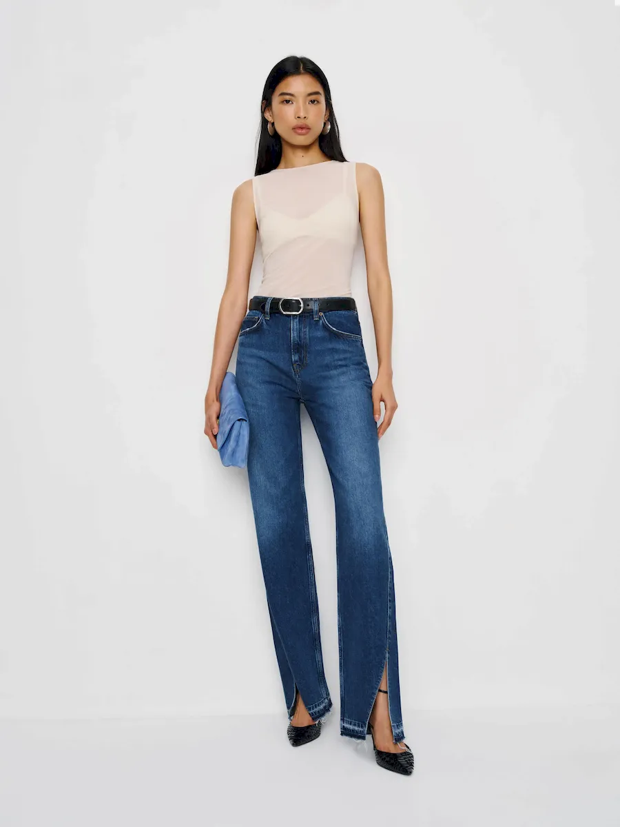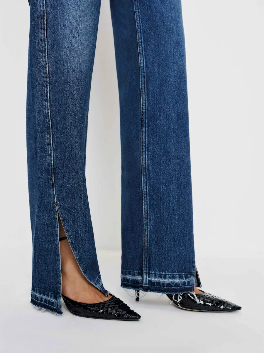 Designed to be slouchy below the natural waist, thighs, and legs with fitted hips.See our size & fit guide.