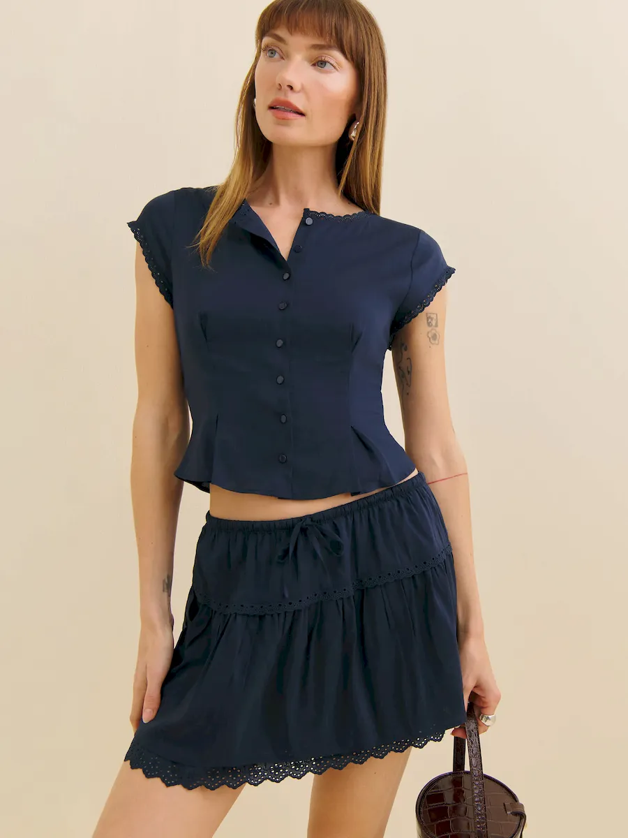 Designed to be fitted at bodice with an A-line skirt.See our size & fit guide.