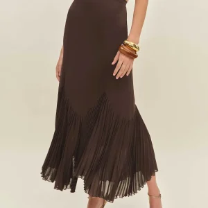 The model is wearing a size 0 and is 5’9″, 23″ waist, 34″ hips, 32″ bust.