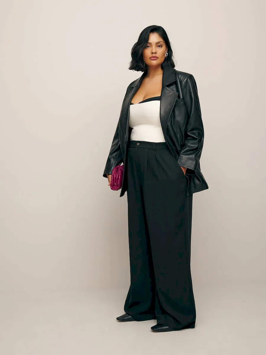 The model is wearing a size 1X and is 5’10”, 34″ waist, 49″ hips, 42″ bust.