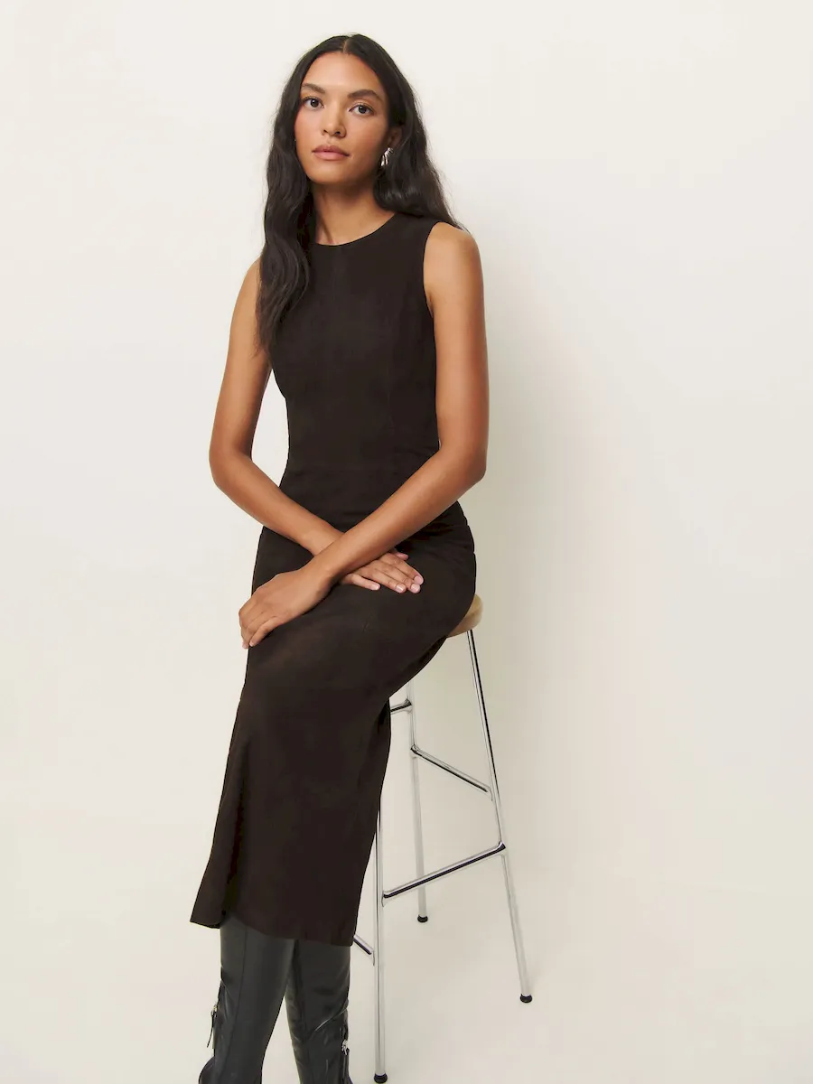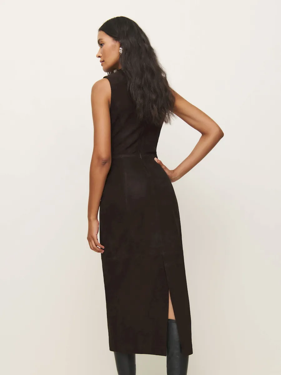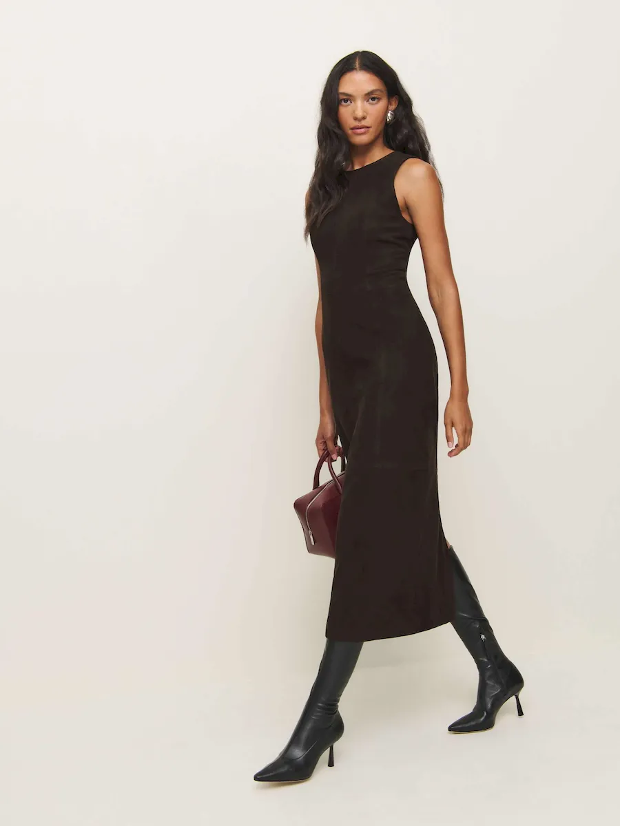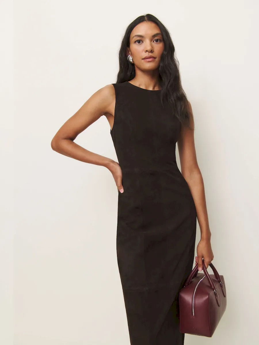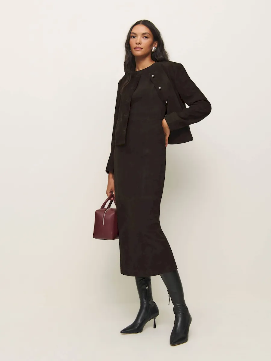 Lightweight chrome free drapey soft lamb suede. Clean dirt + clean regenerated leather. More onfabric & care.