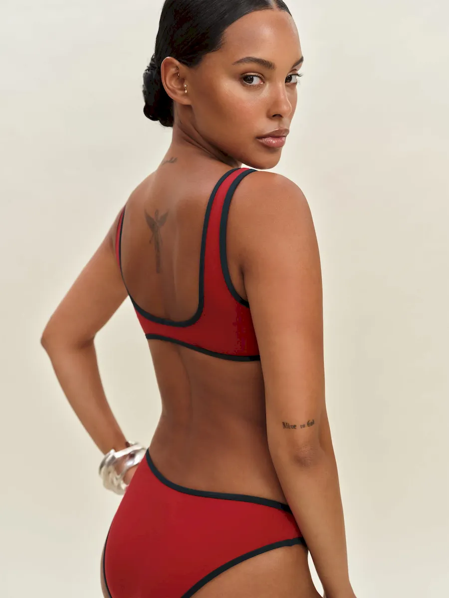 EVO by Fulgar®️ is a polyamide fiber that’s made with renewable, naturally growing plants instead of petroleum. Same stretch and durability as a regular nylon bathing suit minus all the fossil fuels.