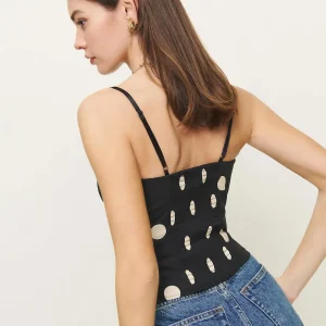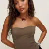 The model is wearing a size 0 and is 5’9″, 24″ waist, 34″ hips, 32″ bust.