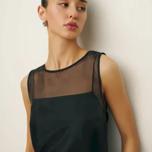 The model is wearing a size 0 and is 5’8″, 23″ waist, 35.5″ hips, 30″ bust.