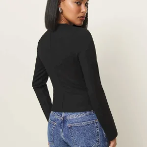 The model is wearing a size XS and is 5’9″, 23.5″ waist, 34″ hips, 34″ bust.