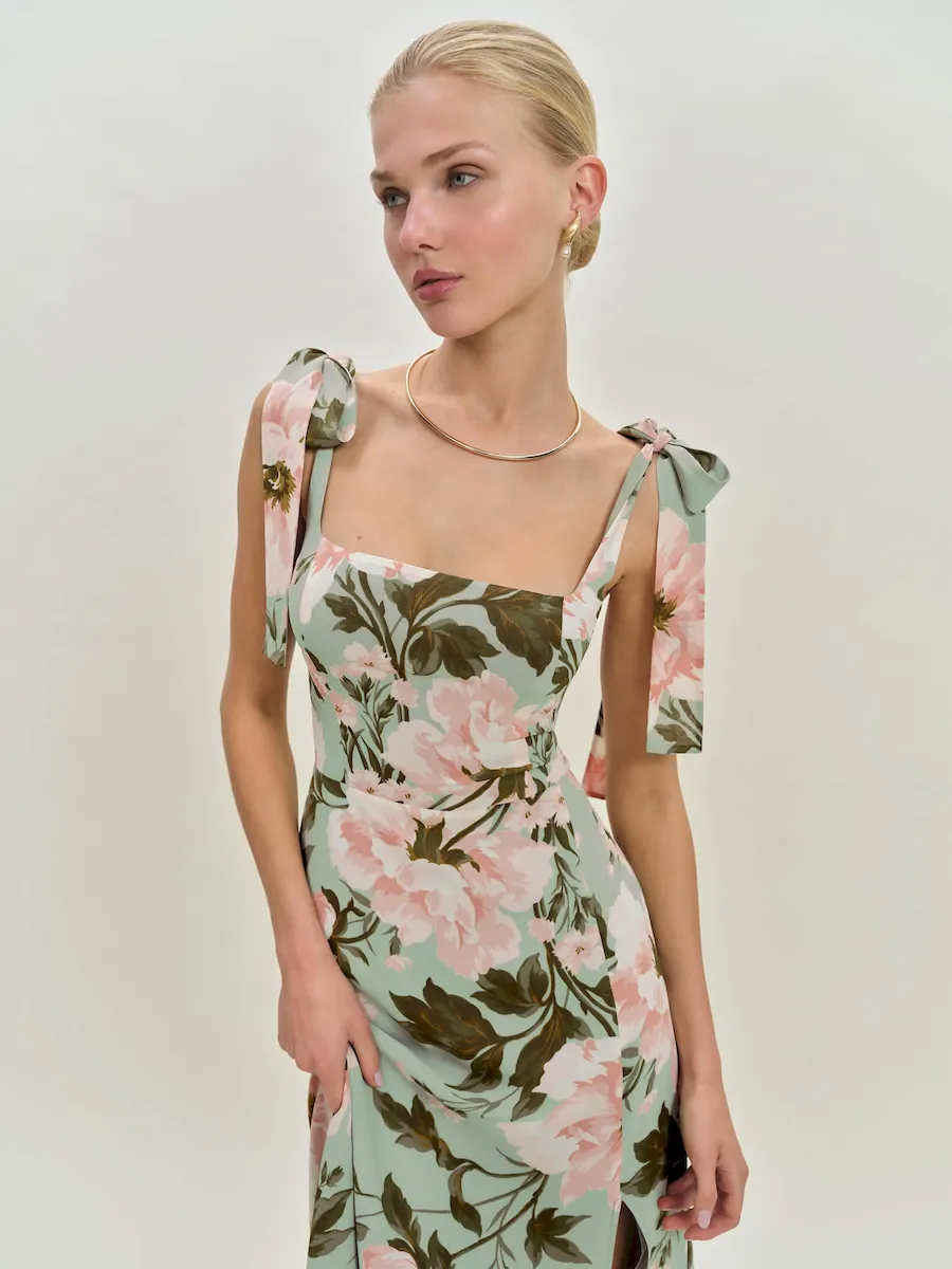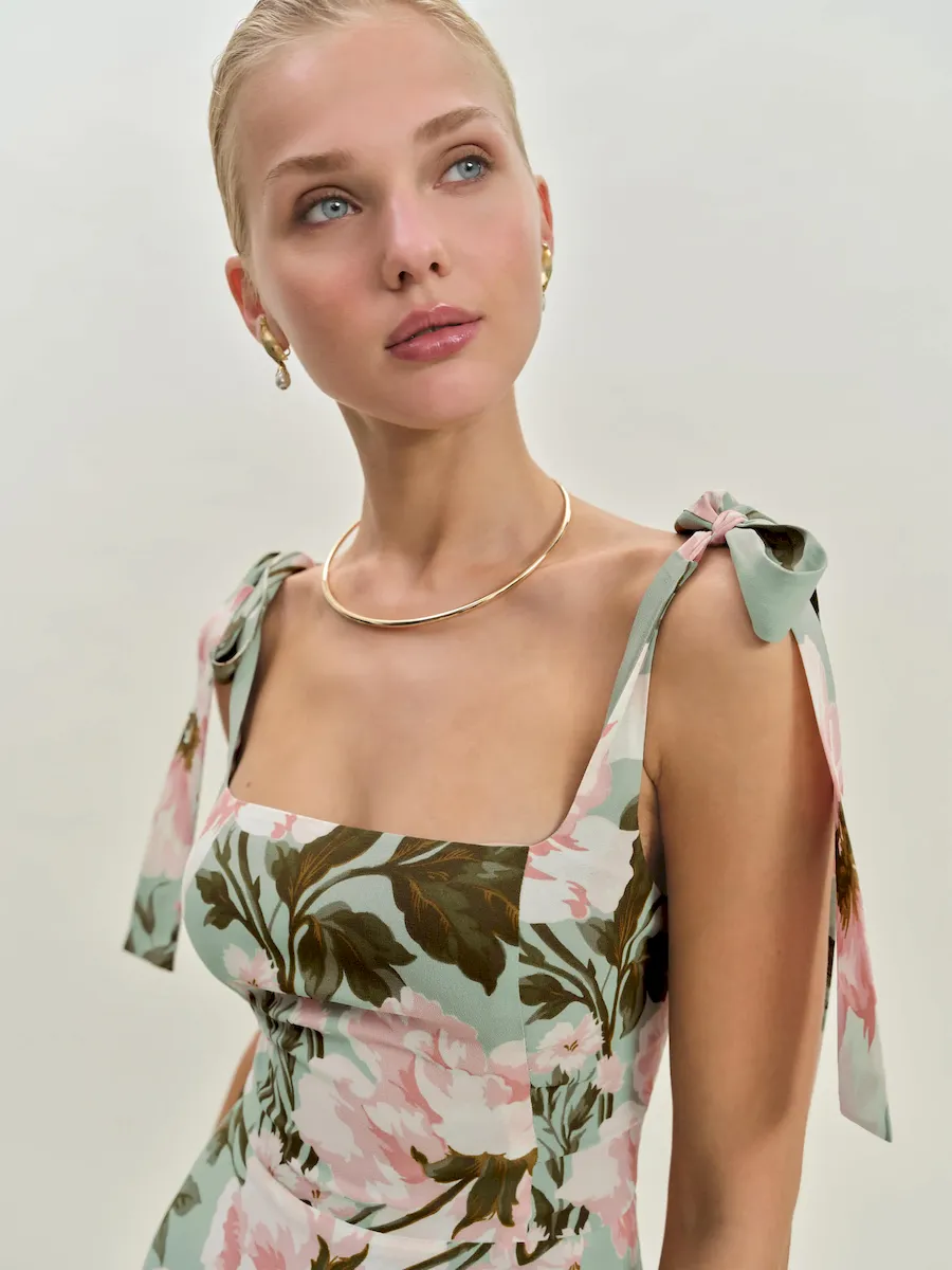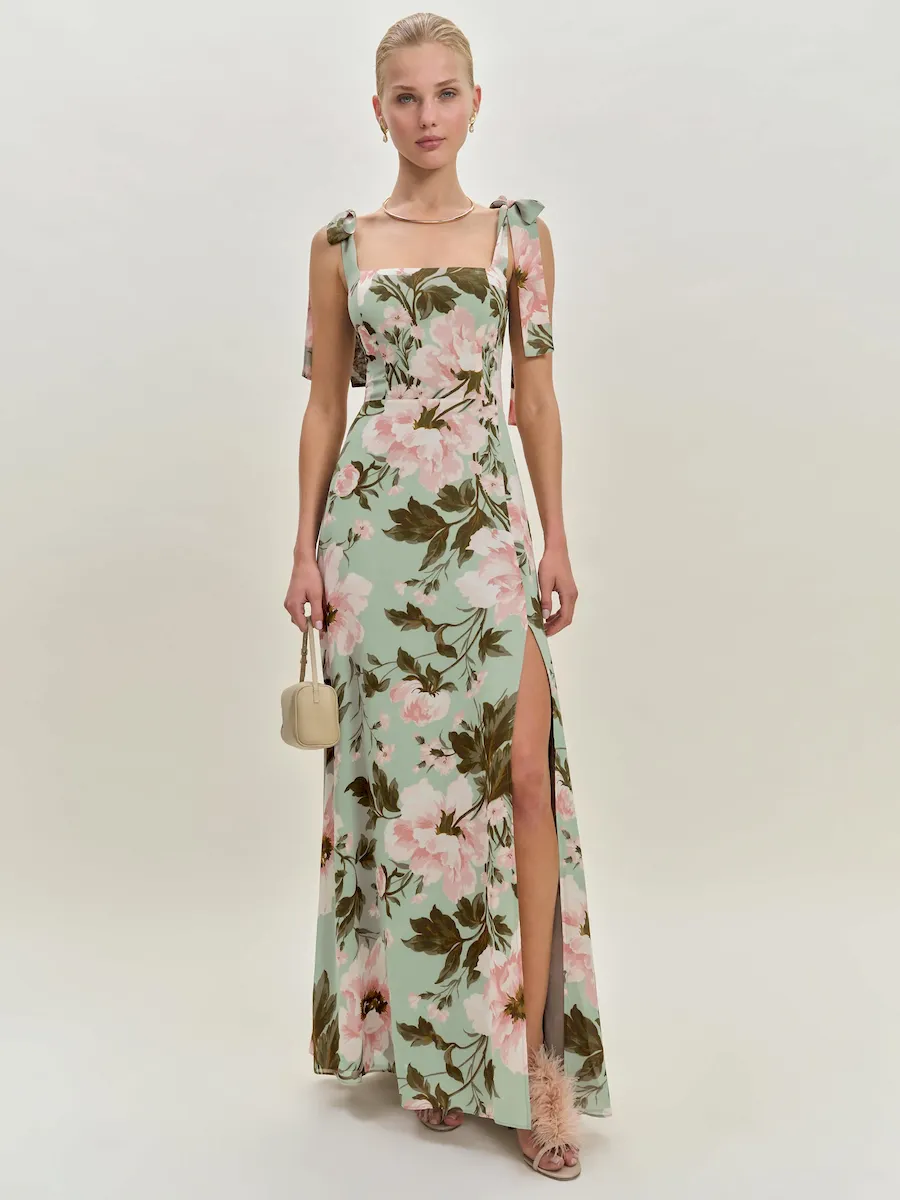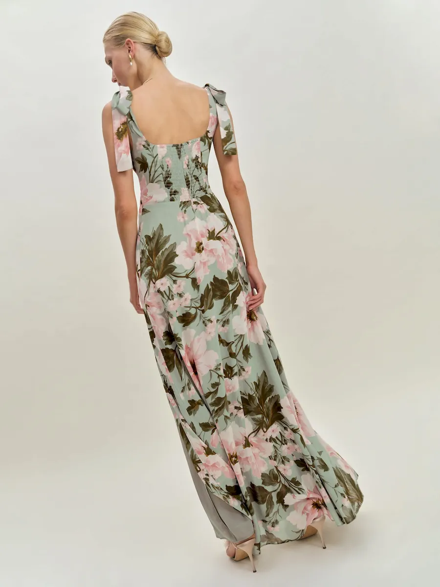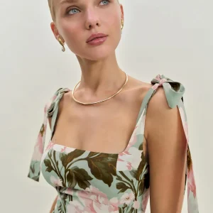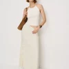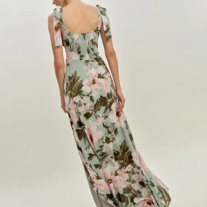 The model is wearing a size 0 and is 5’9″, 22″ waist, 35.5″ hips, 33.5″ bust.